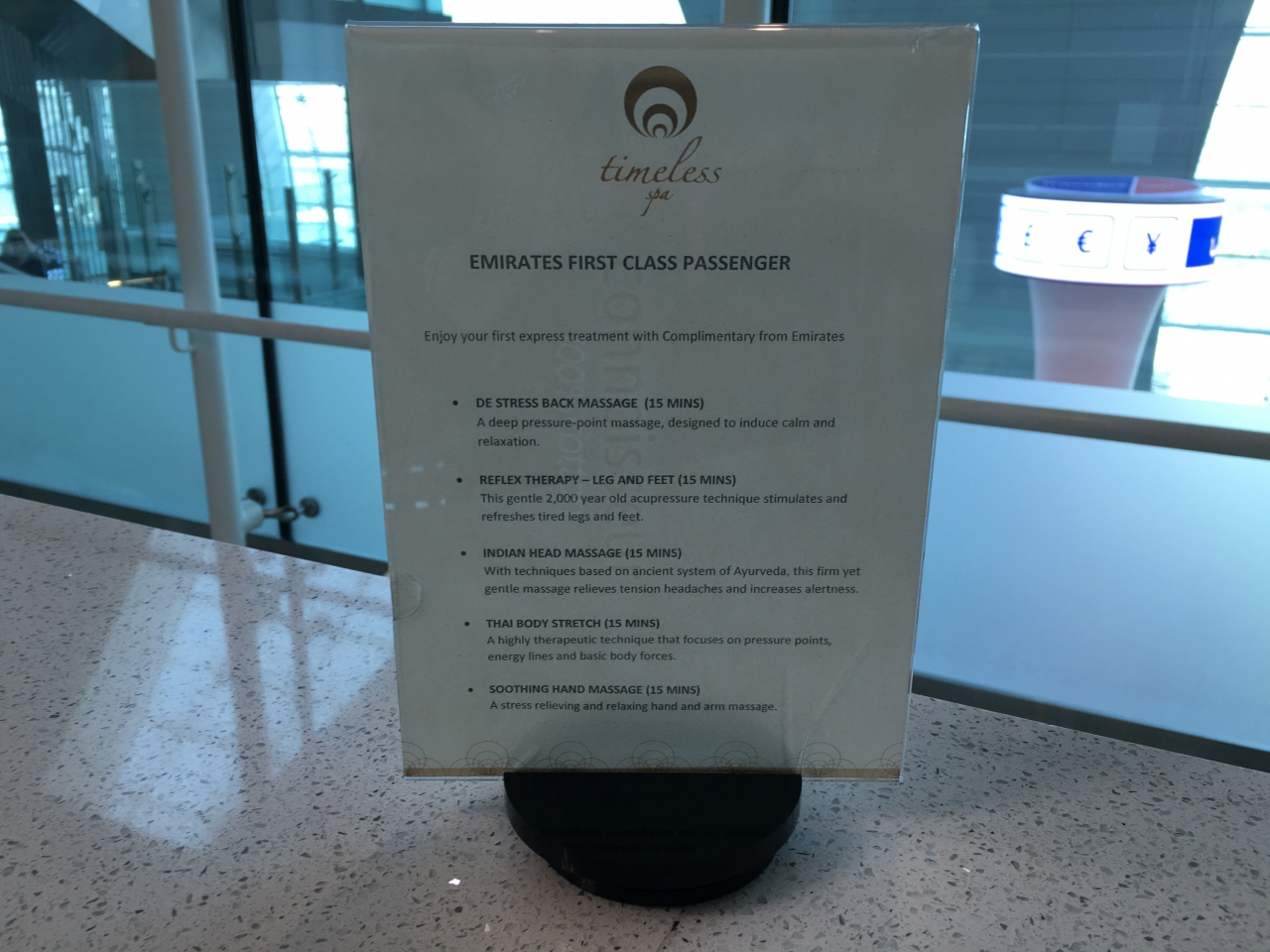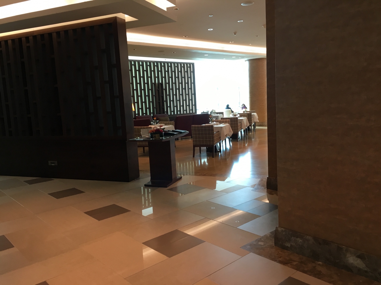 私がまず最初に行ったのは、タイムレス スパで無料で受けられる15分間のマッサージに更に45分間分のマッサージを追加して全身マッサージをお願いしました。マッサージの後はシャワーで、次は食事・・・ということでレストランへ移動です。レストランではビュッフェとオーダーの両方が可能でしたが、搭乗までにあまり時間がなかったので、ビュッフェのみで食事を済ませました。お通しで出てくるホムスは絶品で、あまりの美味しさにおかわりを頂きました。