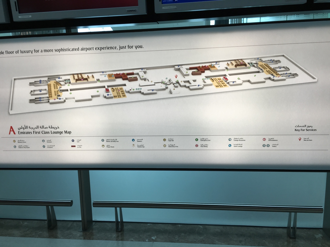 エミレーツ航空のA380専用ターミナルを利用しました。とにかく広いです。免税品などもラウンジの中で販売されています。睡眠部屋、コンピューター部屋、シガールーム、子供用の遊び場等、1日ここで楽しく過ごせそうです。