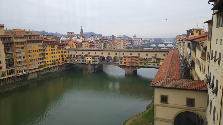 途中アルノ川沿いの廊下から見えるポンテヴェッキオの景色もステキでした。