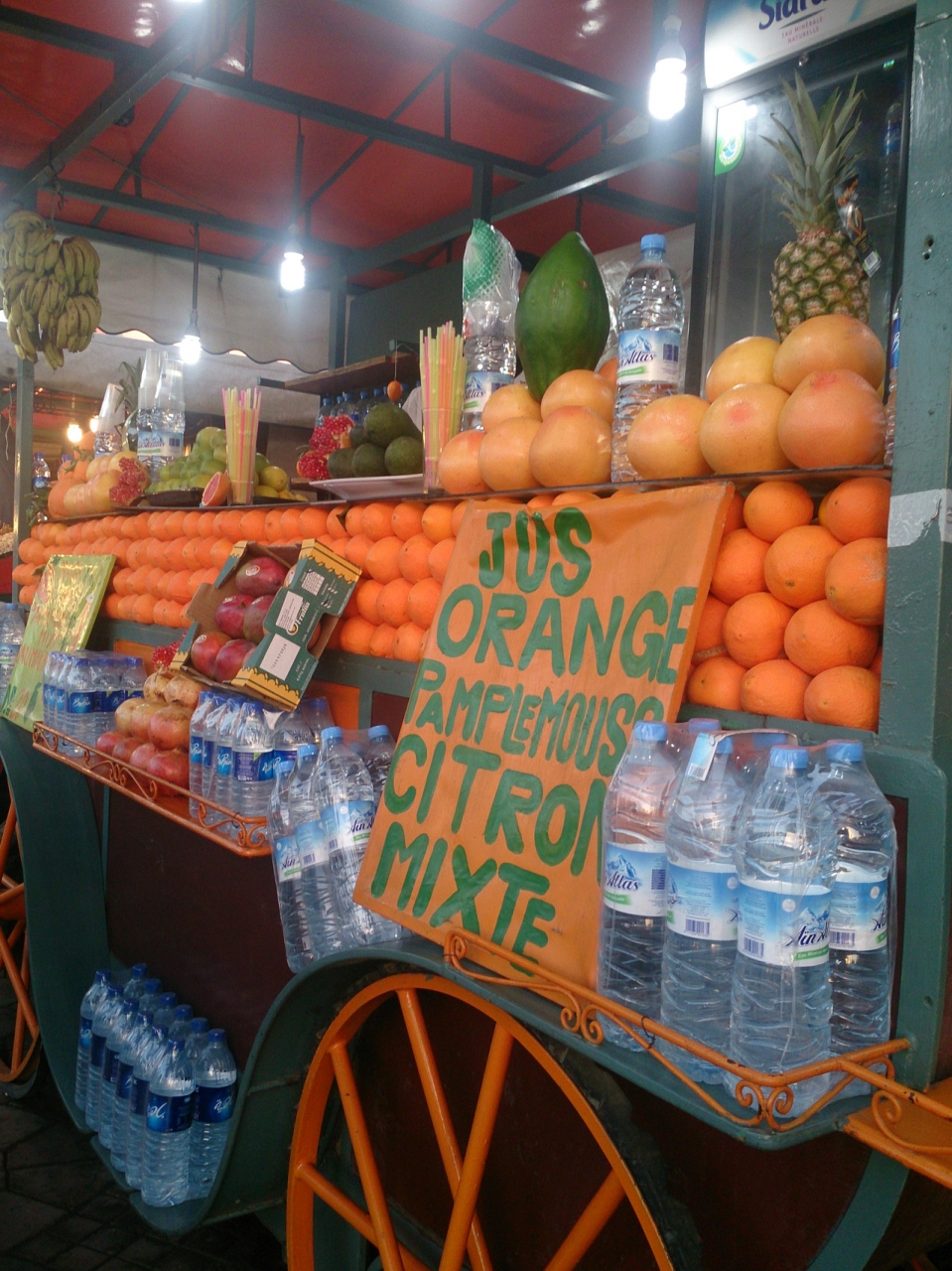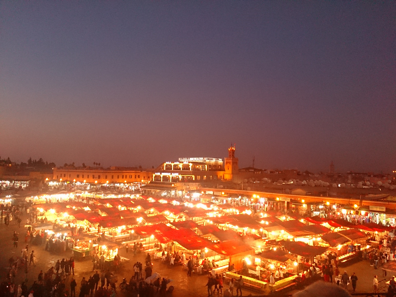 夕方からはジュースや食べ物の屋台が立ち並び、夜景がとてもきれいなので、ぜひ夕方から行ってほしい場所です。屋台の絞りたてオレンジジュースが有名。とにかくモロッコに来てから、搾りたてフレッシュオレンジジュースがとても美味しくて、毎日飲んでいました。ただ、屋台のジュースは、コップ等が清潔でないようなので、気を付けた方がいいとも聞きましたので、ちゃんとしたレストランで氷無で飲むことをおすすめします。