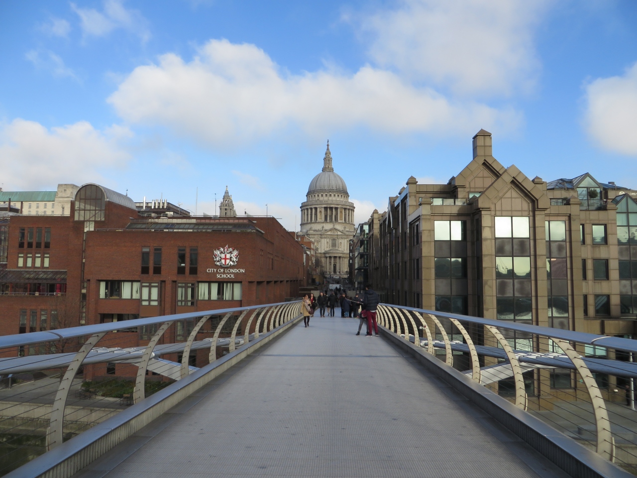 テムズ川の南岸(ウォータールー側)を歩いていると、かなり広い範囲から大聖堂のドームが目に入ります。ミレニアム橋からは、ちょうど橋の真ん中にドームが見えるので、この橋を渡りながら大聖堂に近づいていきました。重厚感のある大聖堂で見ごたえがありました。