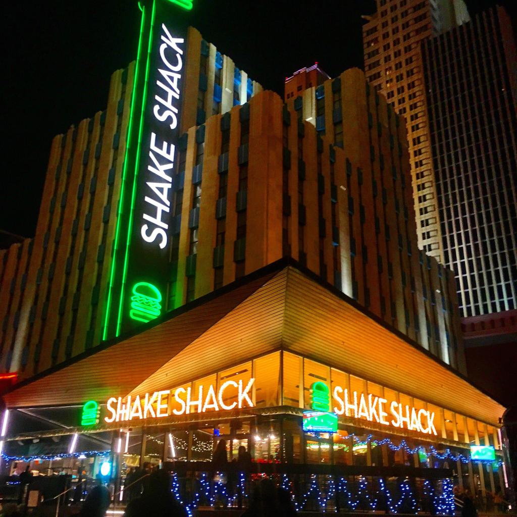 ニューヨークで食べた時とても美味しかったので、ラスベガスでも食べに行きました。 夜の9時頃でしたが、行列ができてました。 店内は席も沢山あったので座ってゆっくりと食べれる事ができました。 シャックバーガーとポテトとファンタを注文し、すぐに出来上がりました。とても美味しかったです!毎日通いたくなる美味しさです。