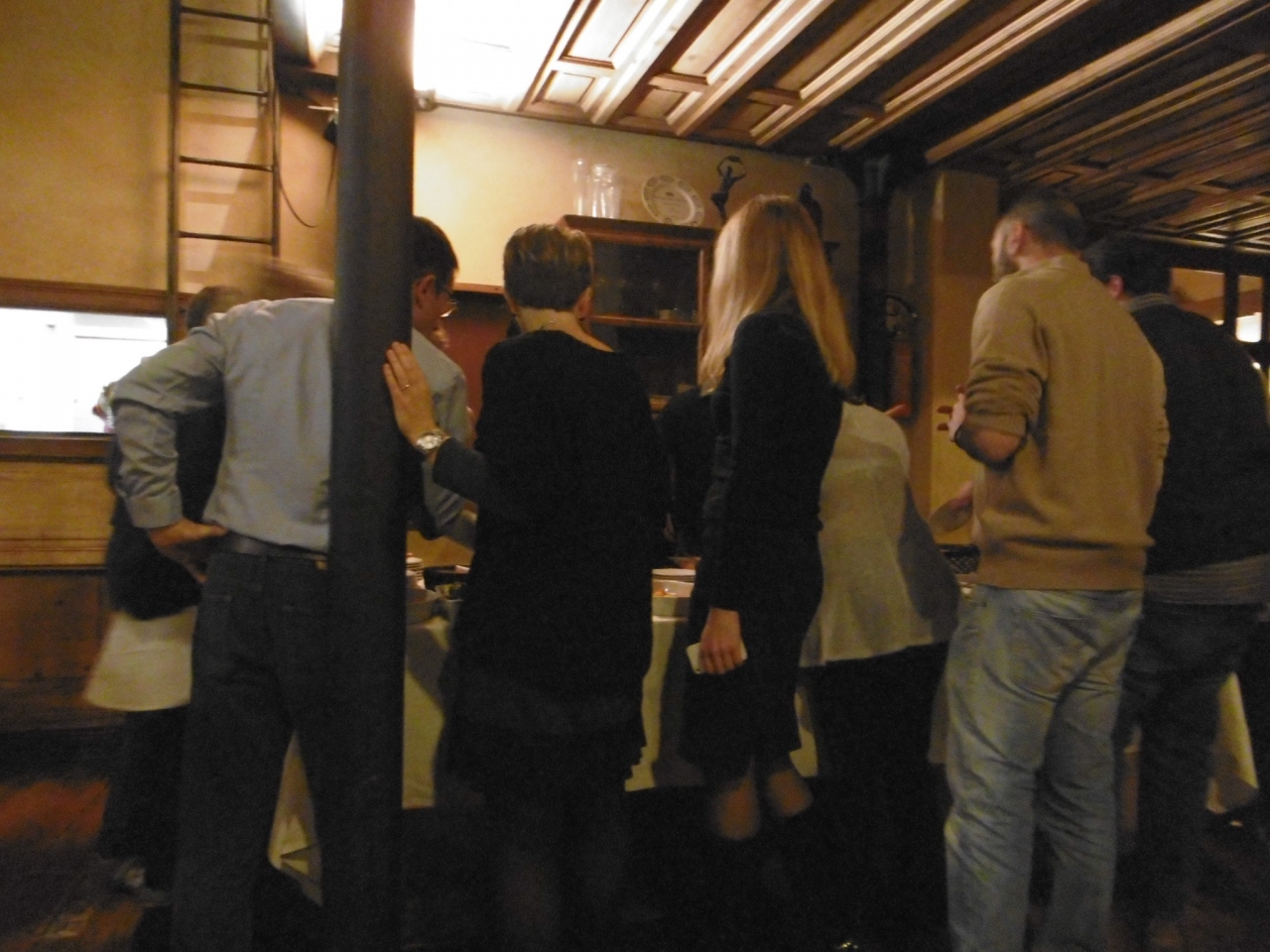 - ブッフェで、前菜がテーブルに並び、好きなように取ることができます。何か出来上がるときに、厨房からシェフが(〜が準備できました!と)叫びます。