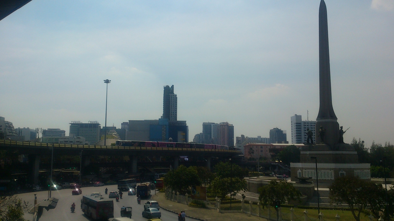 塔はロータリーの中心にあり周辺は近郊へのバスの発着所になっており売店/屋台も多くいつも多くの人々で賑わっています。またBTSの駅にも近くスカイトレインもこの戦勝記念塔を迂回するように走っています。バンコクの交通の要衝という感じです。