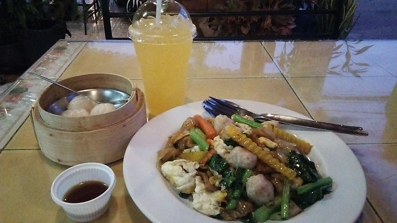 地図上で見ると城壁の北東あたりに位置してたので、なかなか探せずに何度もチャレンジしました。実際には北の中心あたりにありました。店先で飲茶を蒸しているといわれたのでわかりました。いった時間が夕方だったため有名なジョーク(おかゆ)は時間的にと思いセンヤイ(太麺)の焼きそばにしました。屋台とは違ったB級グルメ感はまったくなく、一品料理と感じるぐらいアツアツでおいしかったです。