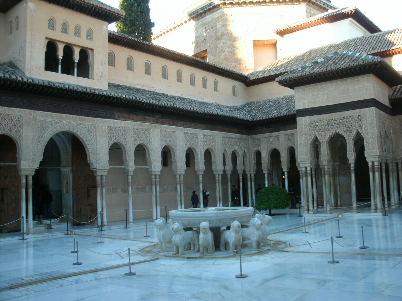 アルハンブラ宮殿はイスラム装飾がいちいちすごくて、天井や壁の写真を撮っているうちにライオンの中庭に来ていました。ここはやはり有名な写真スポット。次々とここをバックに写真を撮っていました。よく見るとこの装飾もかなり美しい。