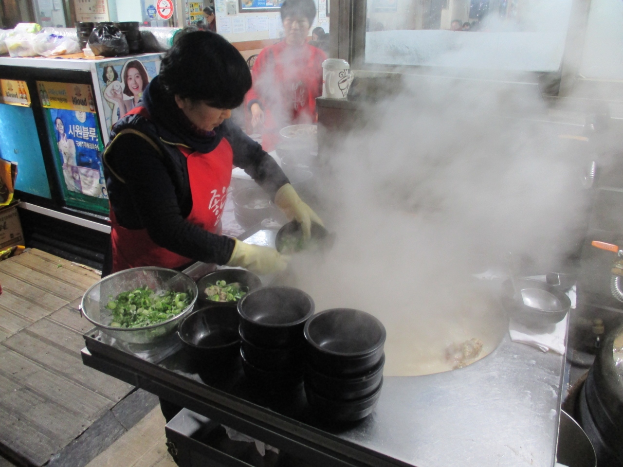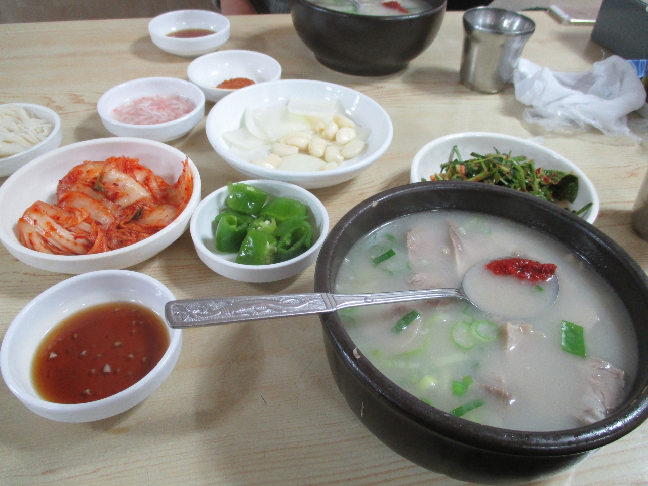 あっさりスープで、臭みも少なく、さいごまでバッチリ食べることが出来ます。テジクッパだけだと単調ですが、薬味も豊富で、あれこれ食べていると味に飽きることはありません。皆さん、朝食に推されていますが、飲んだ後のシメとかおやつがわりにも良いかもしれません。