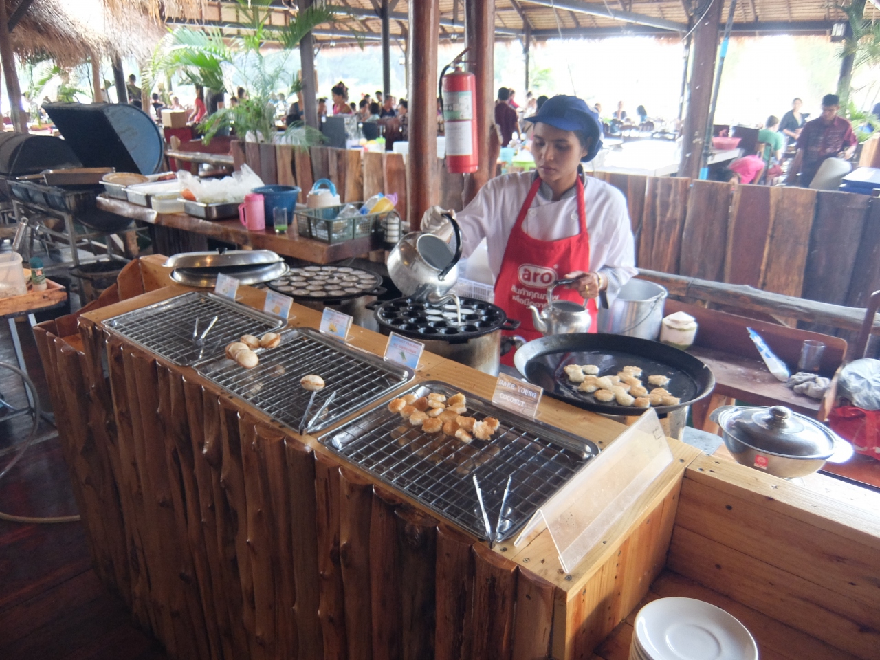 「カノム・クロック」というたこ焼器のようなものでココナッツミルクと米粉の生地を焼いたスイーツです。甘くておいしいです。