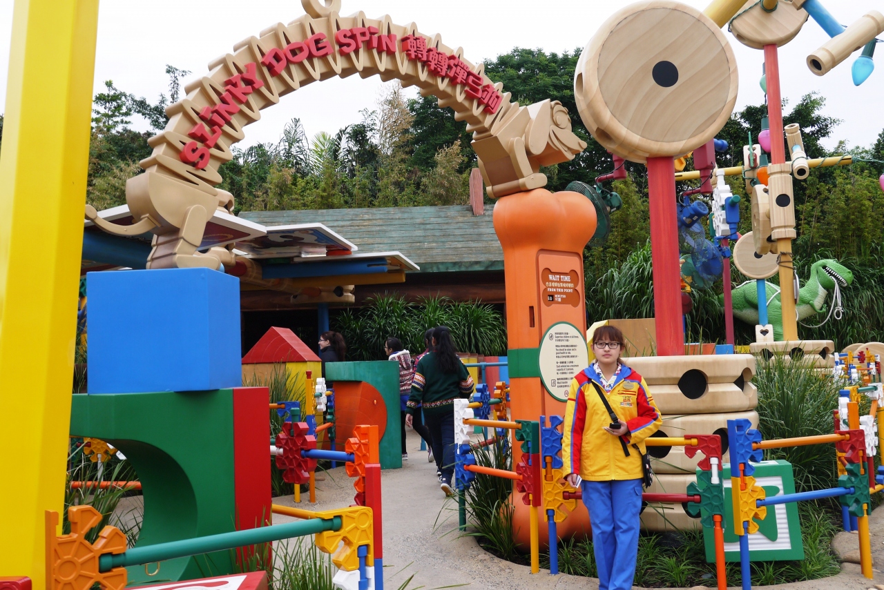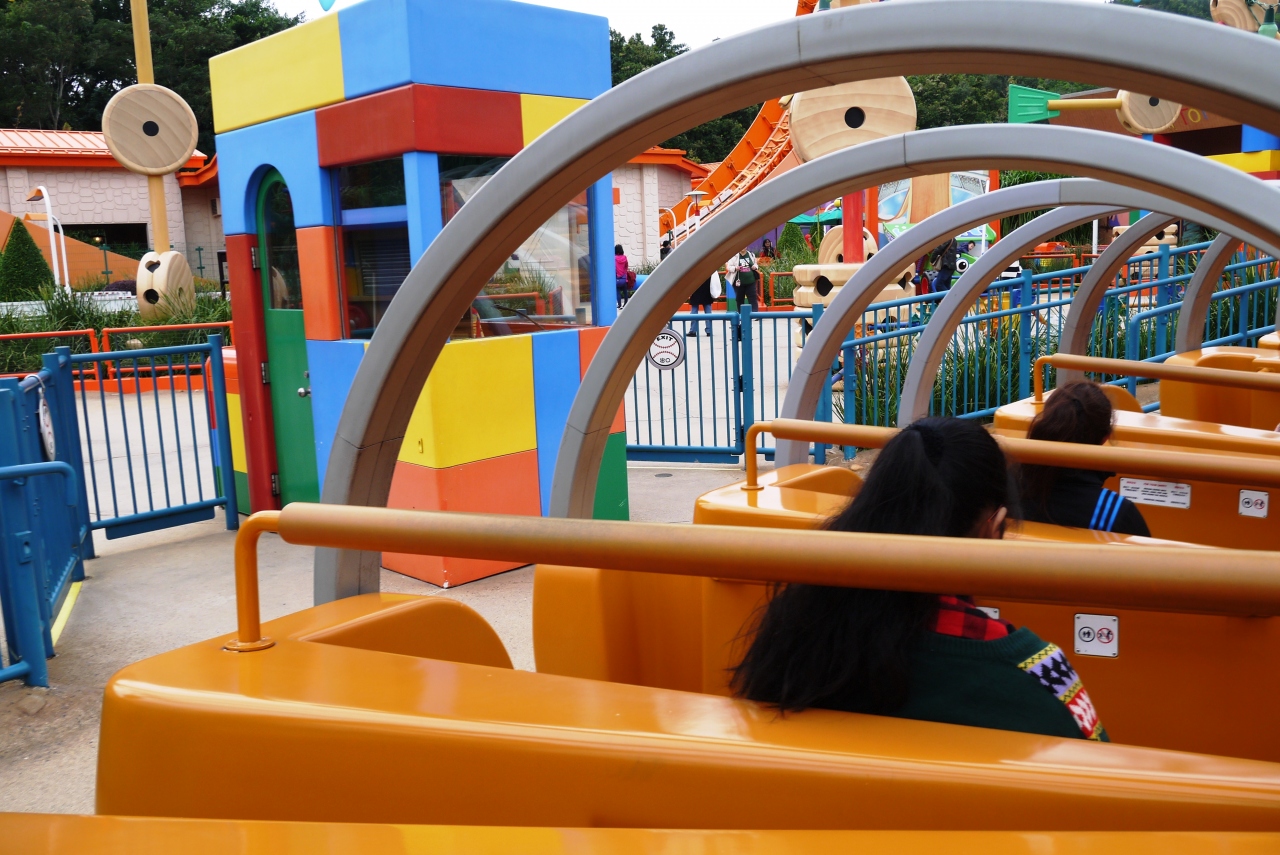 トイストーリーの中に出てくる、犬のスリンキーのアトラクションで、ただぐるぐるとまわる単純なアトラクションで小さな子供でも楽しめます。