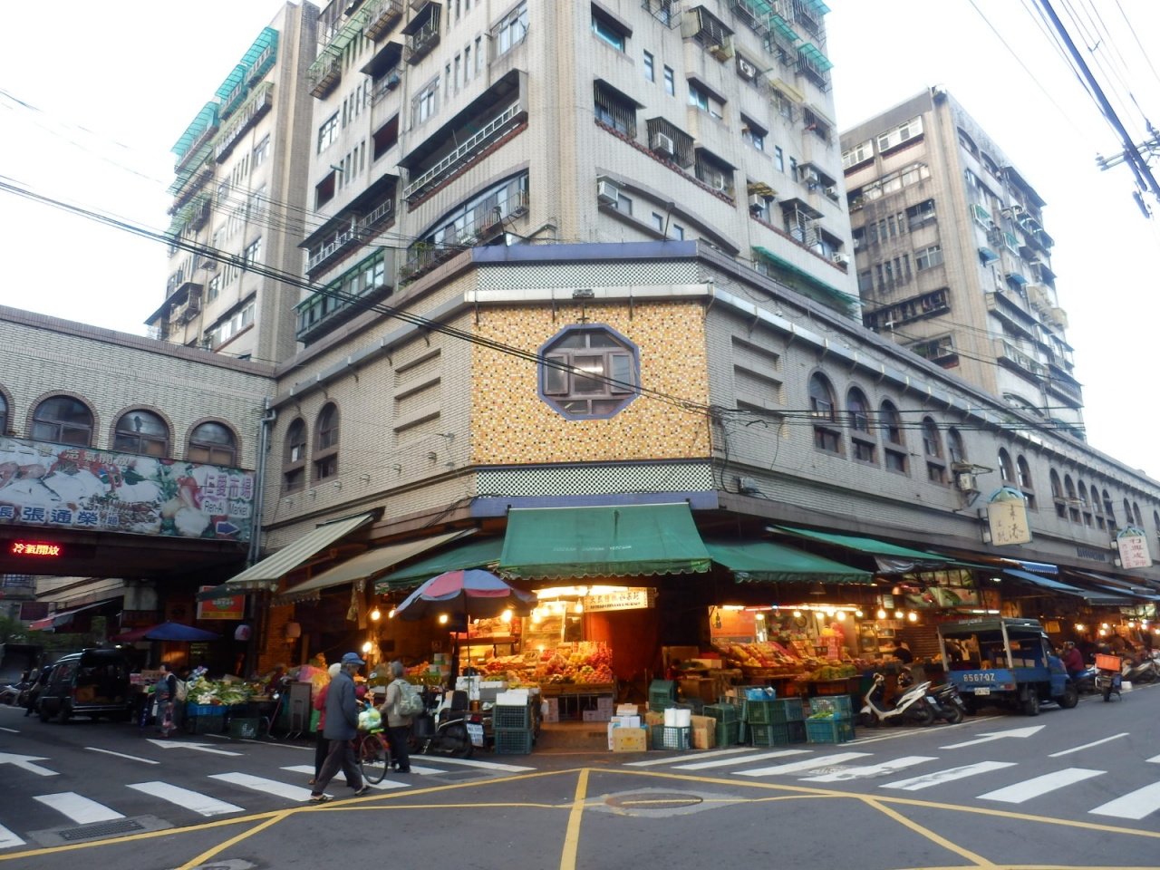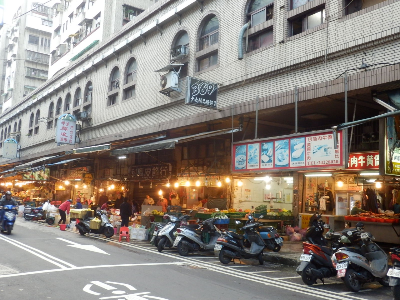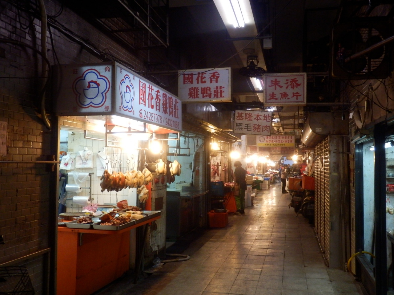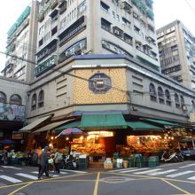 基隆夜市の1本裏手の仁四路でこちらの市場を見つけました。通り沿いには八百屋や魚屋さんが営業していましたが、交差点まで歩いたところ、大きなマンションの下の2階部分の全てが市場になっていることに気がついて驚きました。交差点を挟んで2つの建物が並び、駅側が仁愛市場、夜市側が博愛市場と看板が出てました。2つの建物は連絡通路で結ばれていて、自由に行き来できるようになっていました。建物内の1階部分はお肉屋さんが多く並んでいて、2階部分は食堂や美容室などがありました。