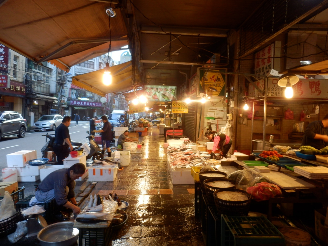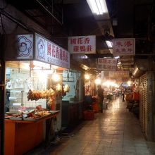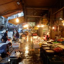 八百屋や魚屋が並ぶ