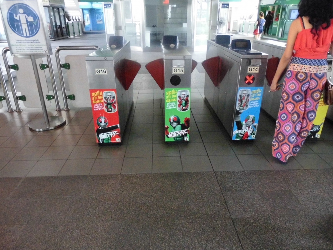 理由は分かりませんが、今回利用した時の改札の自動機には、仮面ライダーの写真が貼ってあったりしました。