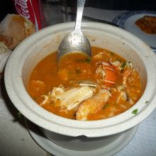 リゾットがお鍋て運ばれて来ました。魚介のスープが効いていて美味しい。エビは手を使って食べないと。