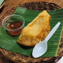 巨大揚げ餃子風の見た目ですが、中には野菜と卵が入っており、お酢のタレ(っていうのかな?)を付けて頂きました。お酢のタレとの相性も抜群で美味しかったです♪