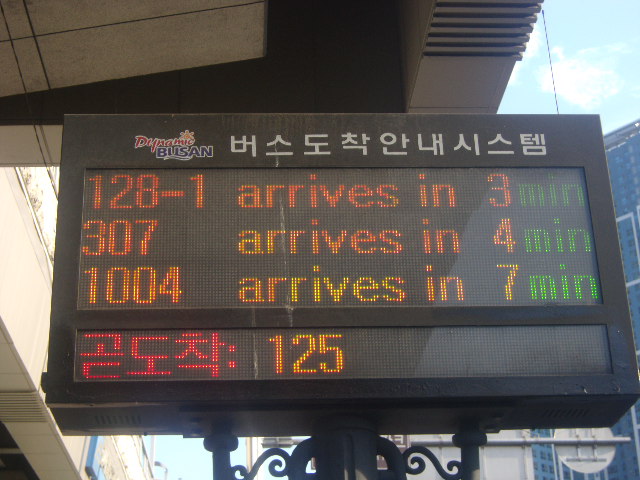 最近でこそ、地下鉄網が急速に延びてきた印象がある釜山ですが、郊外に見所が多いこの町ではやはりバスはまだまだ利用価値が高い公共の交通機関です。交通カードを利用すれば、市内バスに関しては基本的に1200Wですが2回まで無料で乗継可能(但し、同じ番号のバスは不可)ですし、これには地下鉄も含まれますので、取り敢えずバスを最寄りの地下鉄駅まで乗車して、それから地下鉄利用、というのが基本の乗り方だと思います。ただ、乗継が適用されるためには、バスの降車時にもカードをリーダーにタッチしなければなりませんので、忘れないようにご注意下さい。