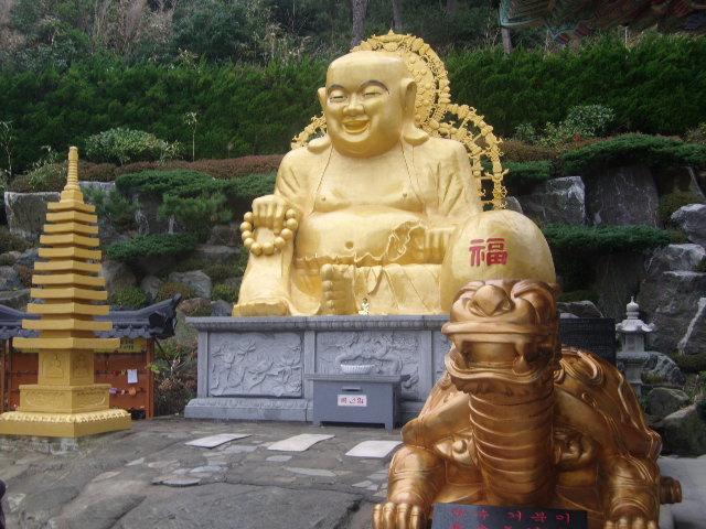 今回は初詣でを兼ねて1月上旬にこちらを訪れました。韓国では旧正月がよりお正月なイメージなので、本当の正月はそれ程混雑もしていないのかなと思いきや、結構な参拝客の数で、やはり韓国でも本当の正月もそれなりに賑わうんだな、という印象を受けました。韓国では珍しい、海辺にあるお寺で、竜伝説に基づいて数々の龍関連のオブジェがあったり、長寿を願った亀さんのオブジェ、観音様のような石像や、ふくよかな体格で癒し系尚顔をした布袋さんみたいな像、そして十二支像などといった面白い見所が沢山あって、海の景色を楽しみながら、これらのスポットを見て回ると楽しいかと思います。