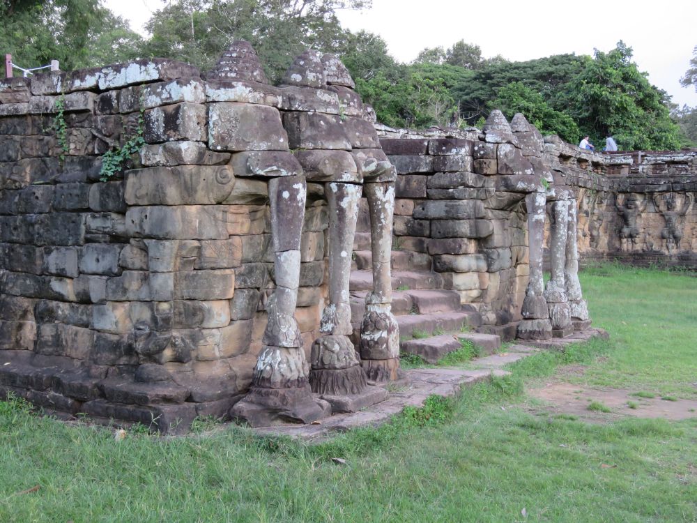 草の生えたテラスが広く続くところです。壁には象の彫刻 象の石像(頭と鼻)があり迫力があります。一部壊れている石像もあります。緑のテラス含め 前側は広い広場のような感じになっているので散歩するのに適していますが 流石に暑かったです。