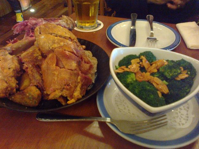 豚の足は写真で見ただけでもかなり大きく(メニューには1~2人用とありましたが)、2人では食べきれないほどの量がありました。お店の人が食べやすいようにカットしてくれます。ザワークラフトとポテトが添えられているのですがそれだけでは飽きてしまうのでブロッコリーを頼んだのは正解でした。本来ならもう少しお腹を空かせてパンを追加するとバランスがとれたのではないかと思います。