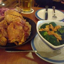 香港在住の知合いから豚の足料理がおすすめ、ということで行きました。頼んだのは入口にも大きく写真が出ていた豚の足を揚げたものとブロッコリーそしてビールです。何も情報がないまま出かけて行ったのでビールはカルスバーグを頼みましたが、折角ならドイツビールを頼めばよかったかなとも思いました。