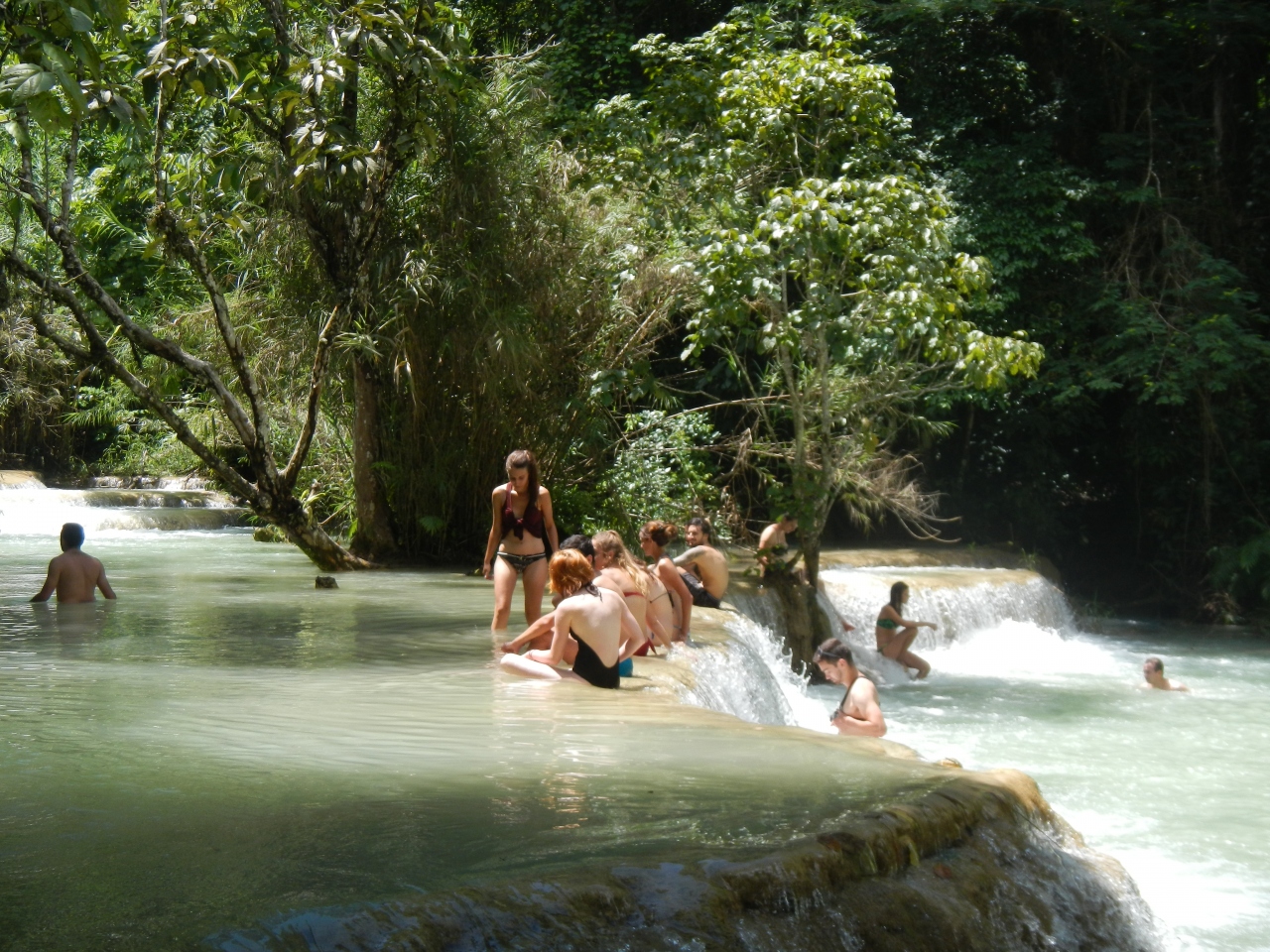 ゲストハウスでクァンシーの滝に行くツアーを手配してもらった。ツアーといっても往復のミニバンのよる送迎だけだ。料金6万kip.現地の滞在時間は2時間ほど。