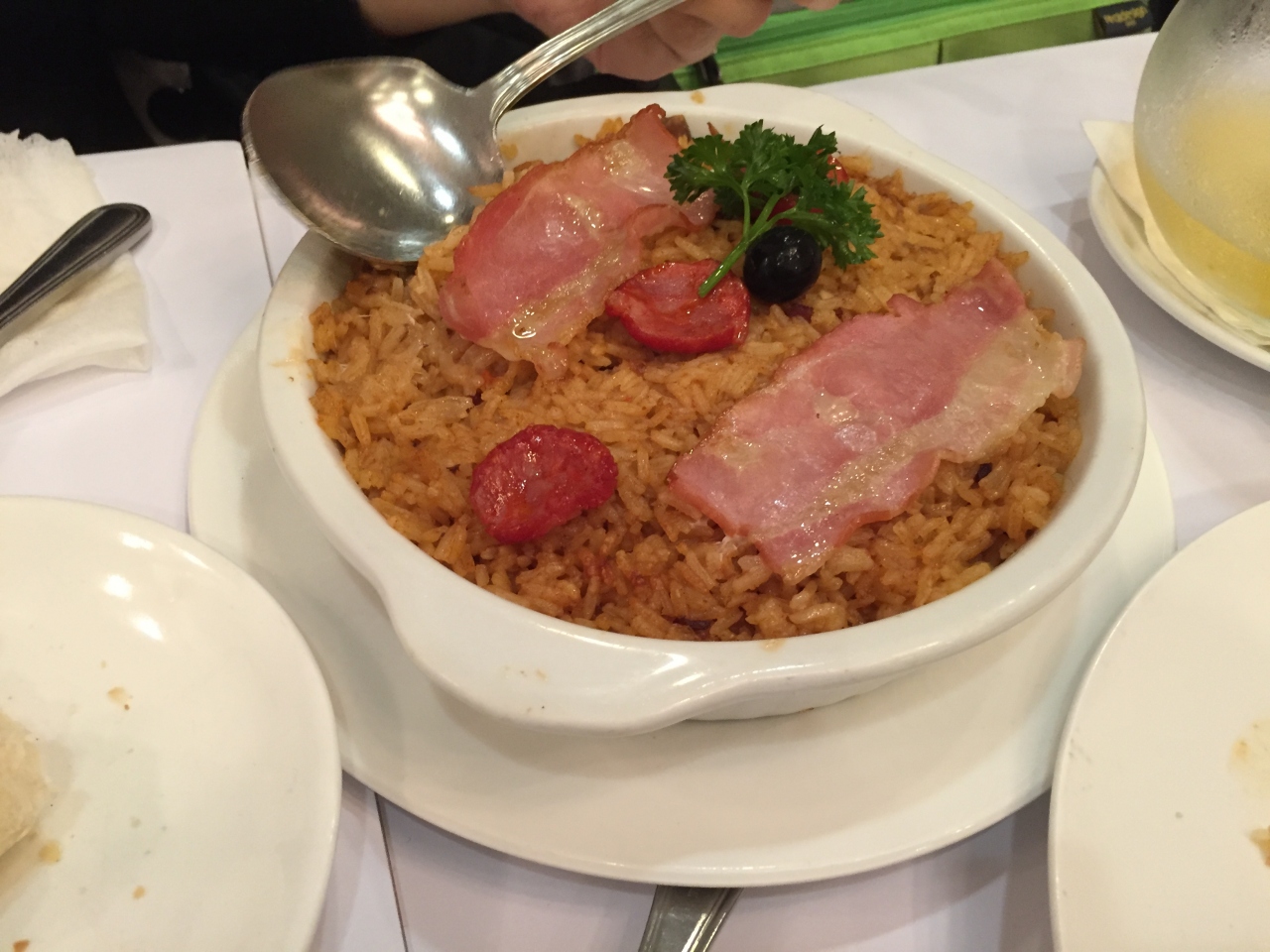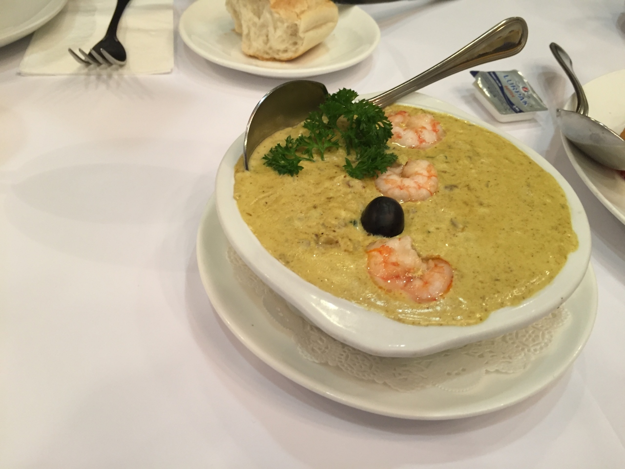 取りあえず定番のアフリカンチキンと鱈の料理、鴨ライス、エビ料理、サングリラを注文。最初に出てきたパンから美味しくて満足でした。3人で1111MOP。