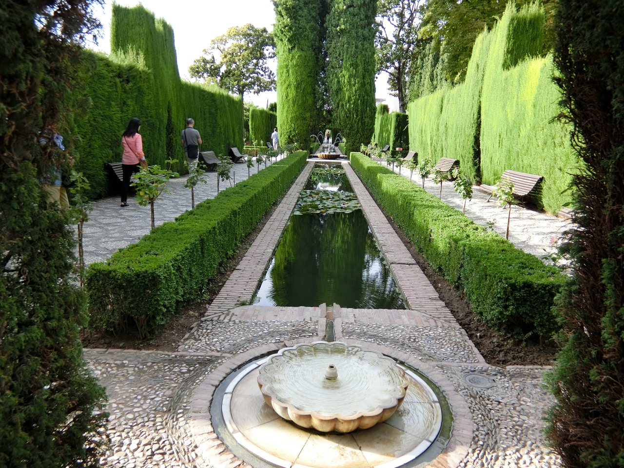糸杉も刈り込みされておらず、枝の先は不均一で非常に見苦しかったです。但し、庭園の奥にあるアセキアの中庭だけは噴水の水しぶきが涼しげでした。