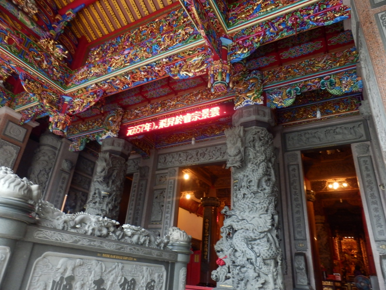 野柳のバス停から地質公園へ行く途中で見つけました。保安宮の正面に野柳漁港があるので、海の安全を守るお寺なのかもしれません。建物の外観は派手な装飾で、内部は赤を基調としていて、いかにも中国のお寺といった感じで、地元の方らしき人達が参拝していました。