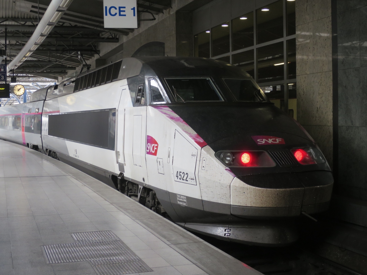 デビュー時はオレンジ色も鮮やかに、直線的なデザインが日本のずんぐりとした新幹線とは違って、さすがはフランスの高速鉄道!と羨望の眼差しでみていたものでしたが、登場から年数も経って車両はお色直しもされてはいるものの、少々くたびれている感は否めません。外観も決して綺麗ではなく煤汚れた感じもします。
