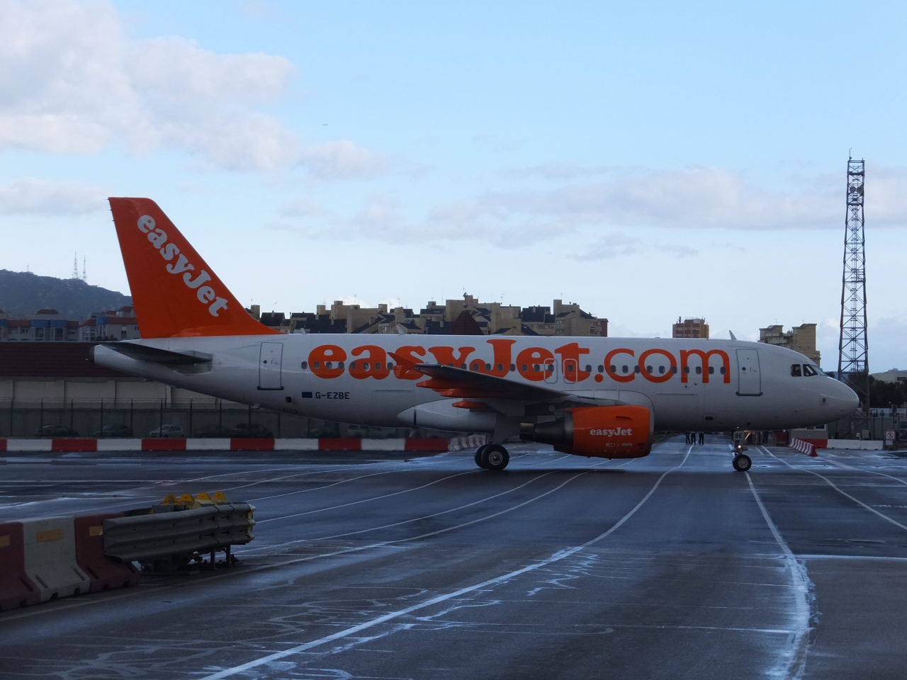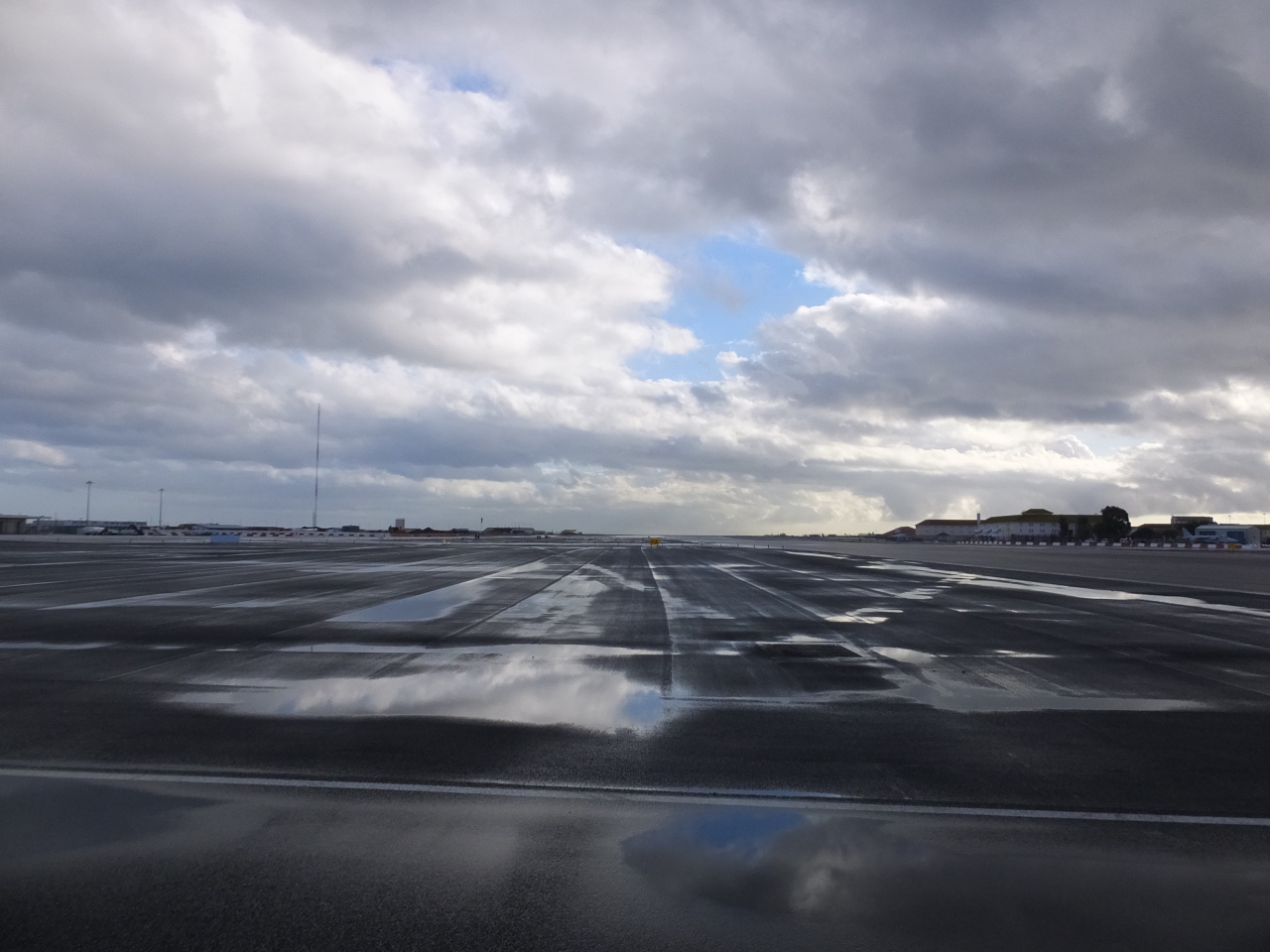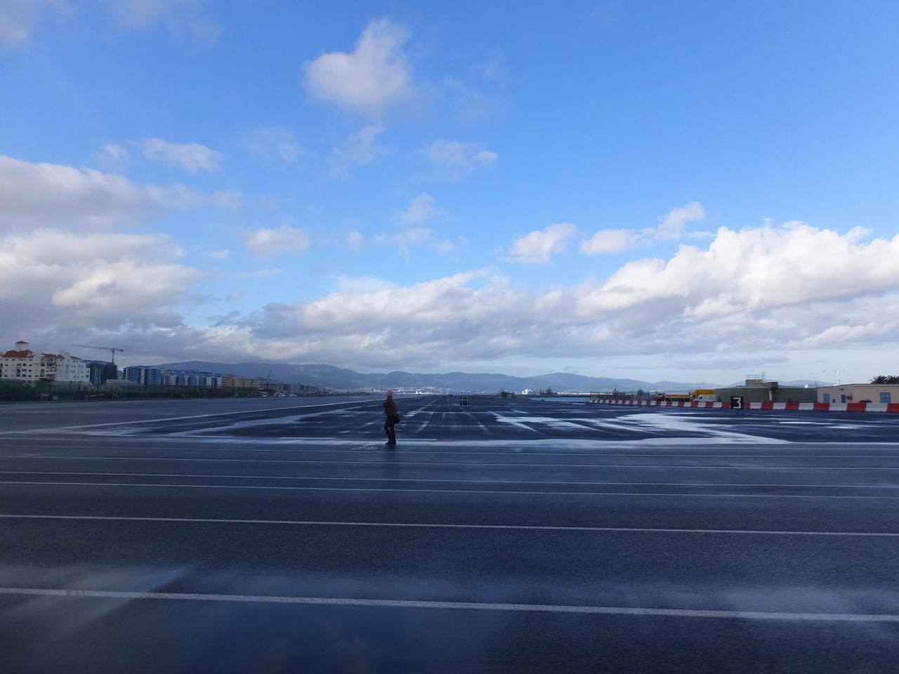 イギリス領のジブラルタルはとても面積が小さく、ジブラルタル半島を縦断する通りと交差するが如く滑走路が横たわっている状態。