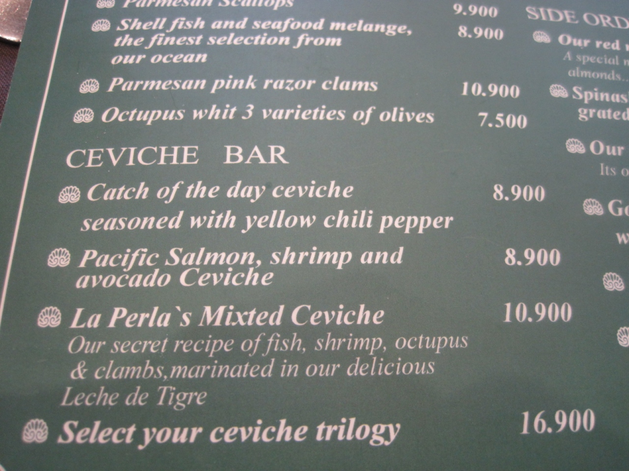 注文したものがダメだったのか、セビーチェはあまり新鮮に思えなかったし、エビのアヒージョは作り置きっぽい感じ。