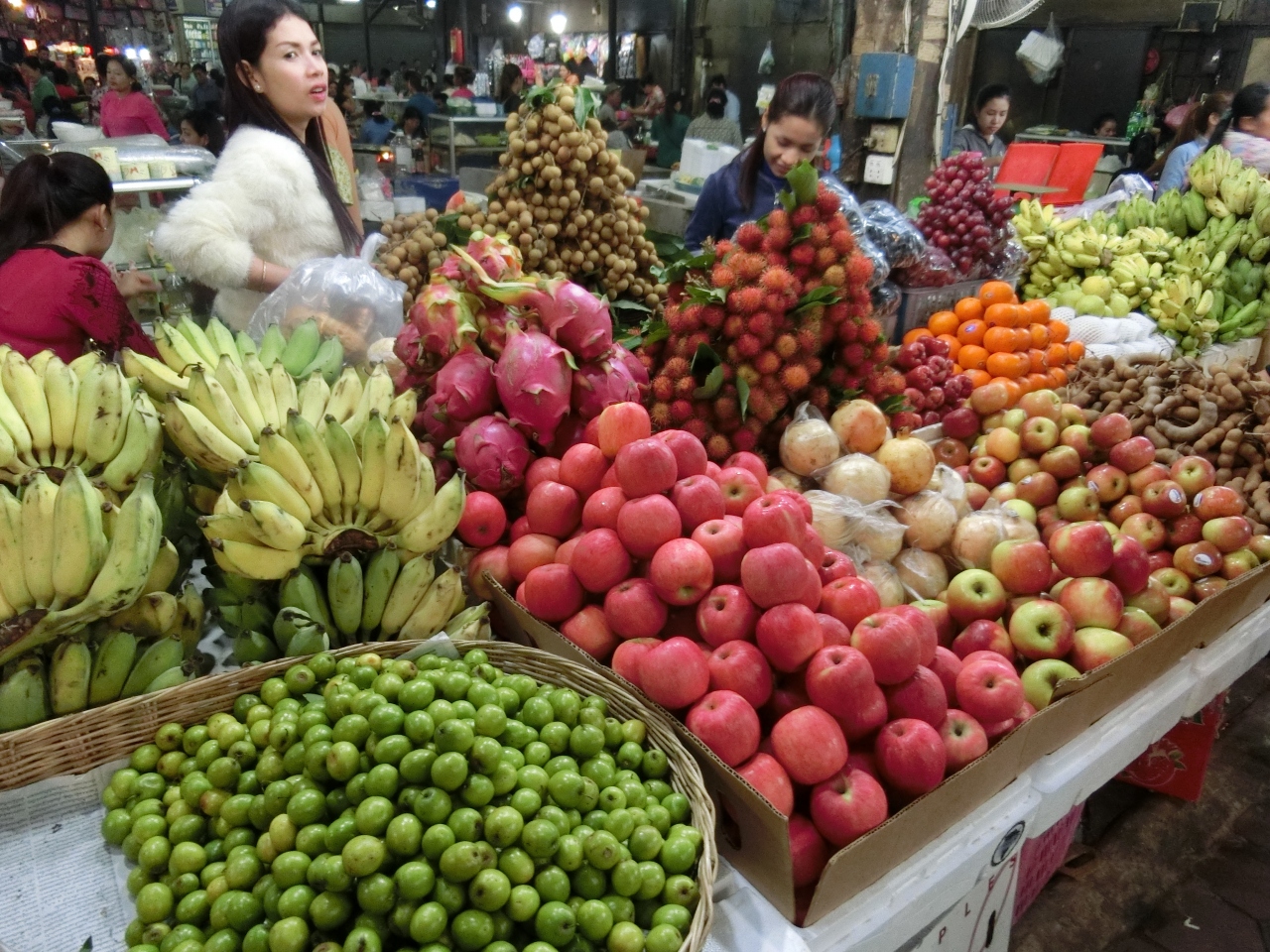 カンボジアは、暑いので朝と夕方からが買い物客が多いのですが、オールドマーケットは、朝早くからやっている店や夜遅くまで開いているもせがあります。