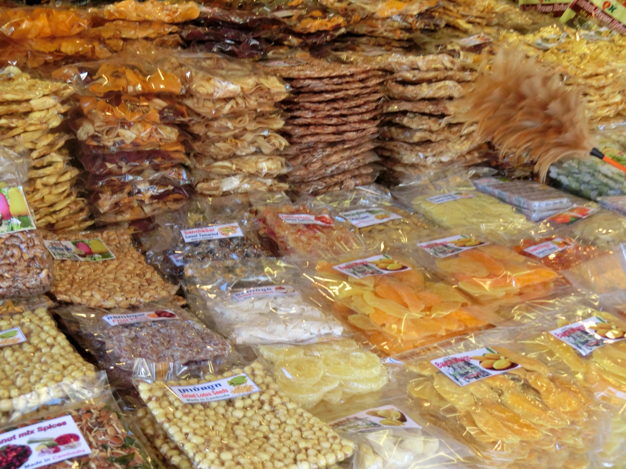 観光客がお見上げを買う定番スポットですが、鮮魚や野菜、食品の売り場はアジアらしい雰囲気です。