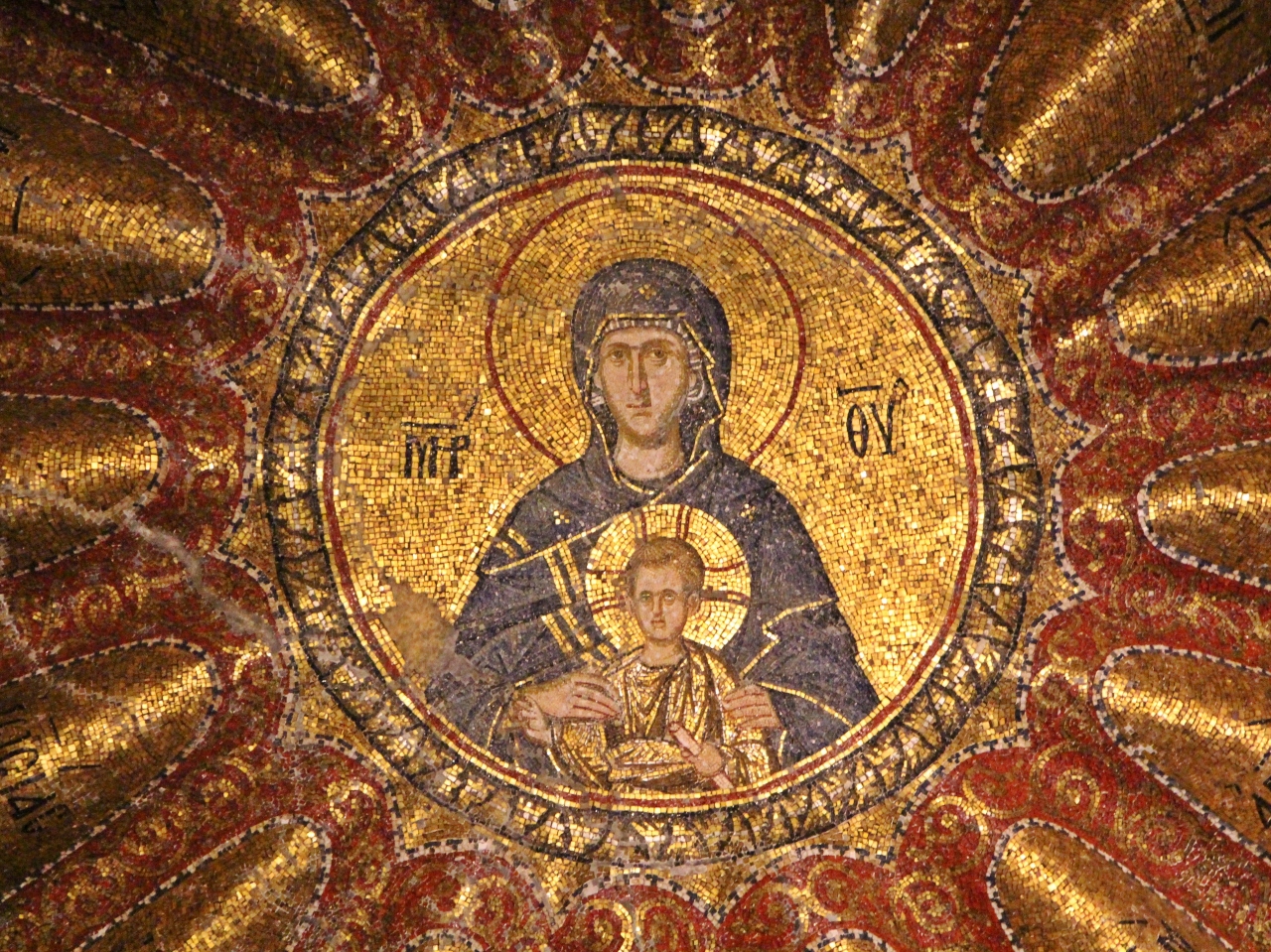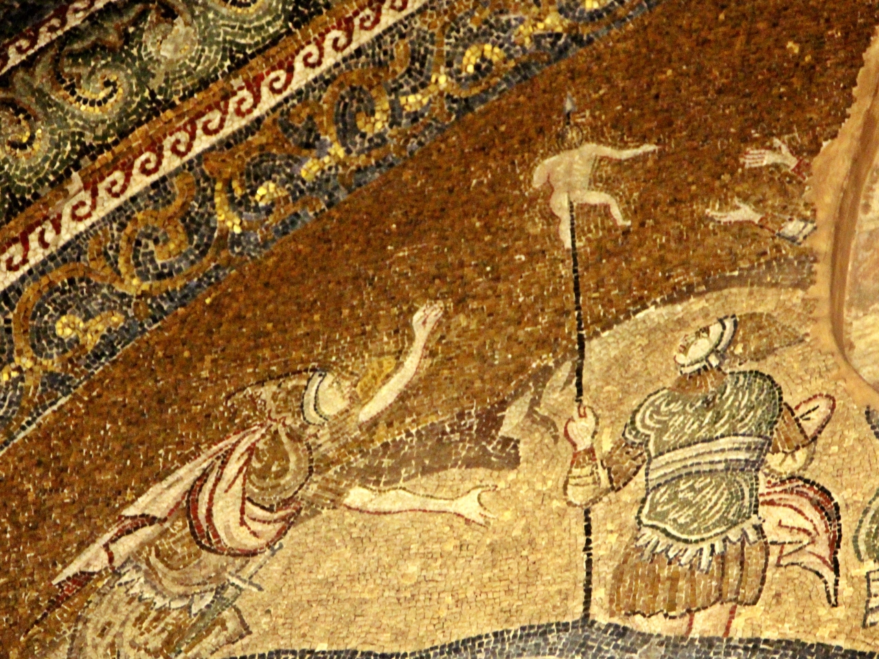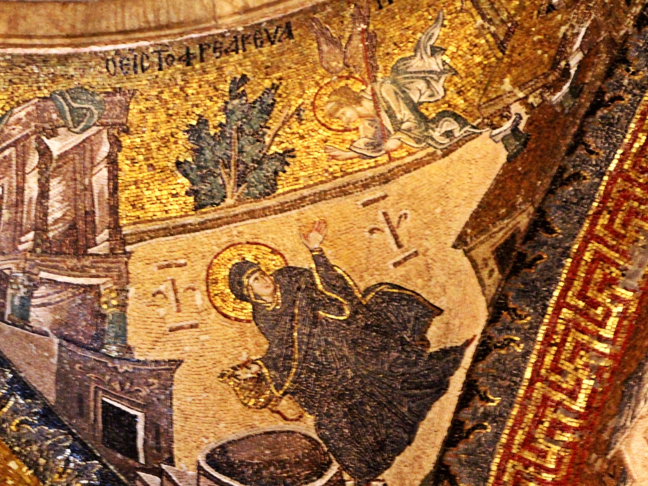 キリストが優しく微笑む【全能のキリスト】など名の知られたモチーフも多いが、ここで見逃してはならないのは、内拝廊の天井付近のモザイク画である【マリアの生涯】だろう。