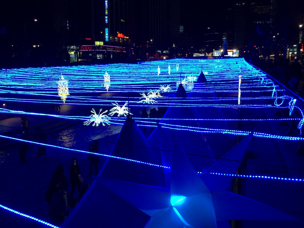 鑑賞中の時折の寒さ対策は清渓川沿いのコーヒーショップ(飲食未実施)などで暖をとり楽しむことが出来ました。