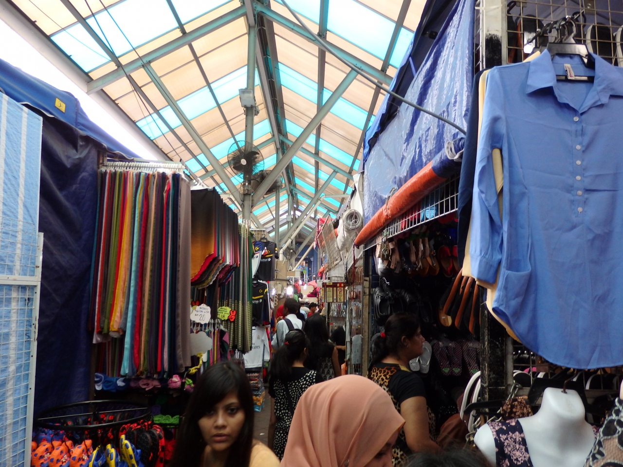 アーケード内は雑貨屋さんが多く並んでいます。サリーなどの生地、小物・アクセサリー、サングラスなど安い値段で売られています。セントラルマーケットより安いと思います。