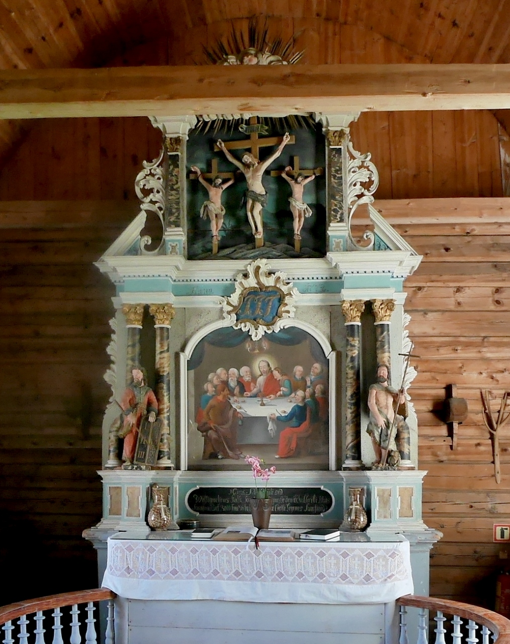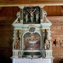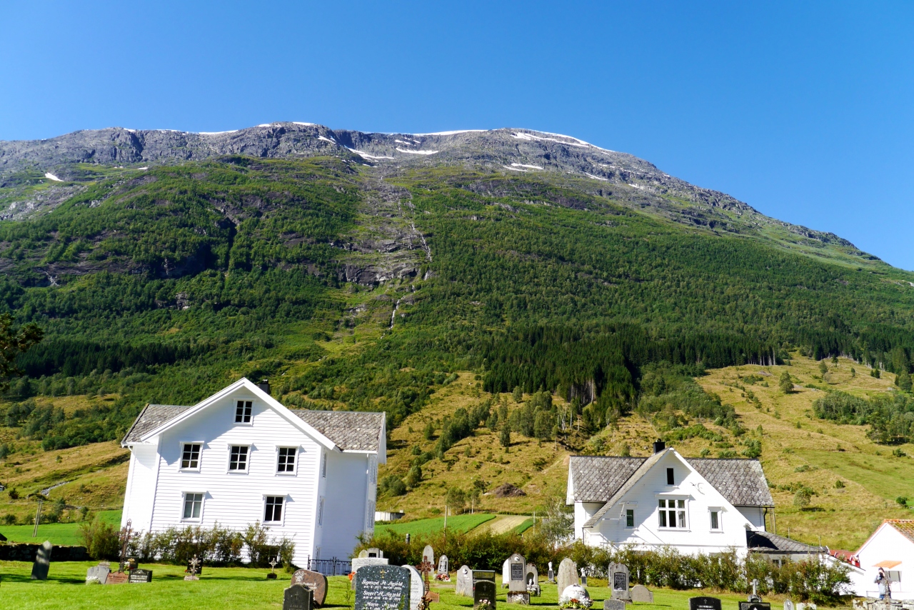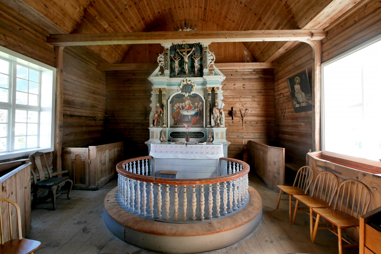船からの観光客で混雑していたが,18世紀に作られた木の教会.両翼が張り出し,十字の形をしている教会だ.男性の帽子掛けの形など,サーメの影響があるような雰囲気だった.フィンランドのSodankylaのOld Church(Vanha Kirkko)を思い出す.木の香りも良いなかなかの教会!ルター派だが,最後の晩さんの絵が祭壇になっていた.OldenはBelgen方面からGeirangerに抜ける途中のNordfijordenの街だ.ここを通るのならぜひよるとよい.Stav教会や石教会とはまた違った味だ