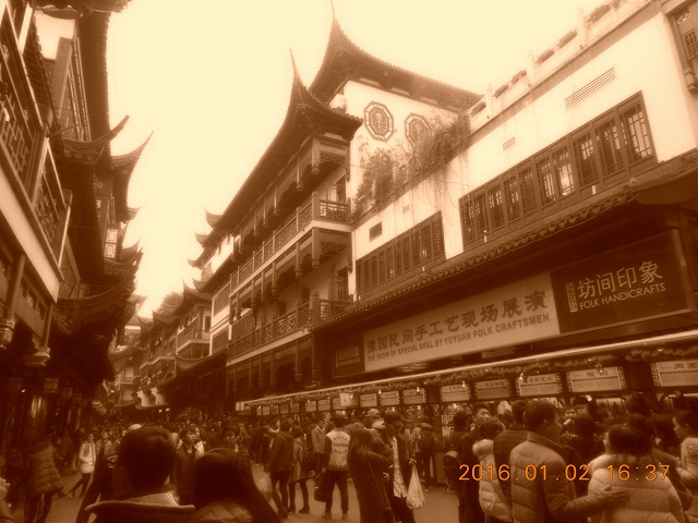 豫園という公園を勝手に印象していましたが、一帯は古い建物に囲まれた観光地でした。観光客が多くまた雑貨やソウルフード店が多く歩くことも大変です。庭は有料です。入りたかったのですが入場制限が行われており今回は見学できませんでした。 レトロ調に写真を撮ってみたらタイムスリップしたような写真が取れました。