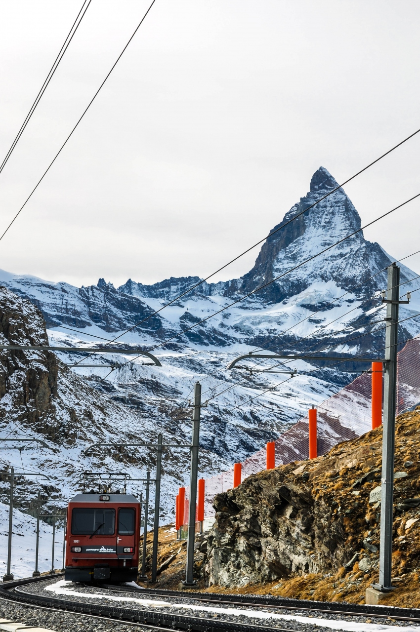 基本的に自由席なので、窓側がとりたければ次の電車を使うことをお勧めします。登りの時は右側にマッターホルンがよく見えます。少し値段が張る電車ですが、途中下車がたしかできたので観光しながら乗るのもいいと思います。