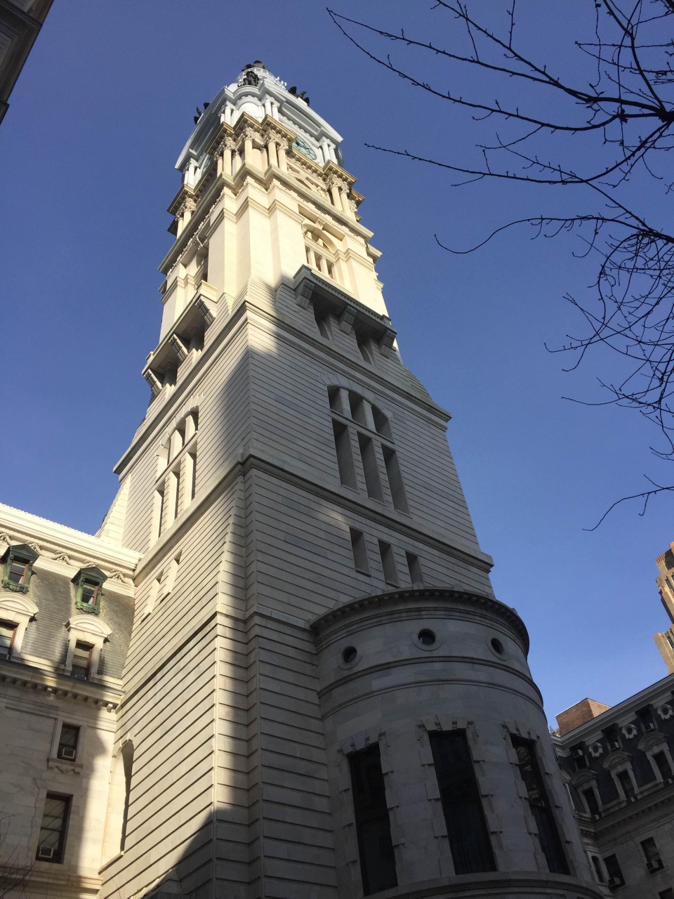 フィラデルフィアの中でひときわクラシックな建物です。高さがあるのでスマホの写真におさめるのが大変でした。クリスマス時期に訪れたので、タワーの下にとても大きなクリスマスツリーが置かれたり、小さなマーケットがでたりしていました。