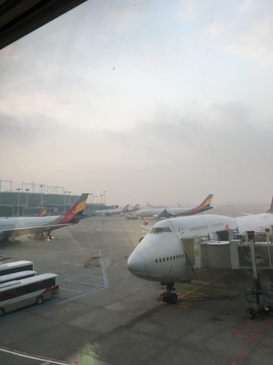 バンコクからの帰り、仁川国際空港で初トランジットしました。トランジット専用の保安検査所がありましたが、スムーズに通過。5分程度でした。乗り継ぎ便まで乗り継ぎ2時間、仁川空港の中で食事にお土産を買う為に両替。