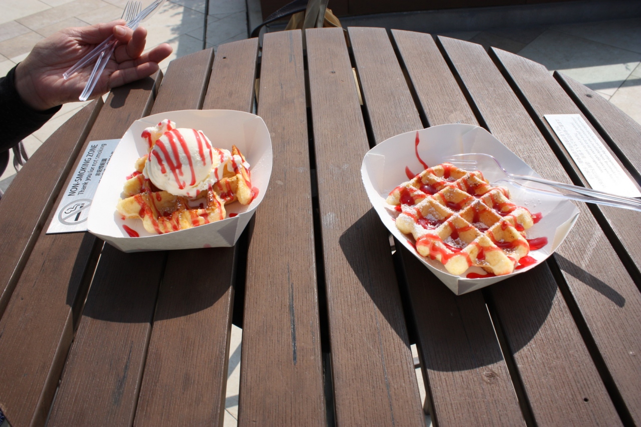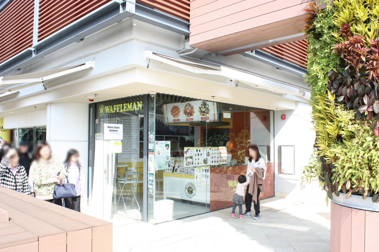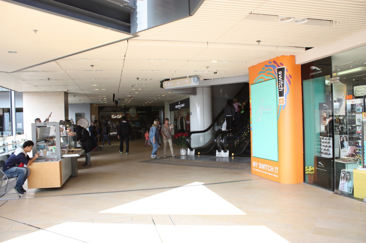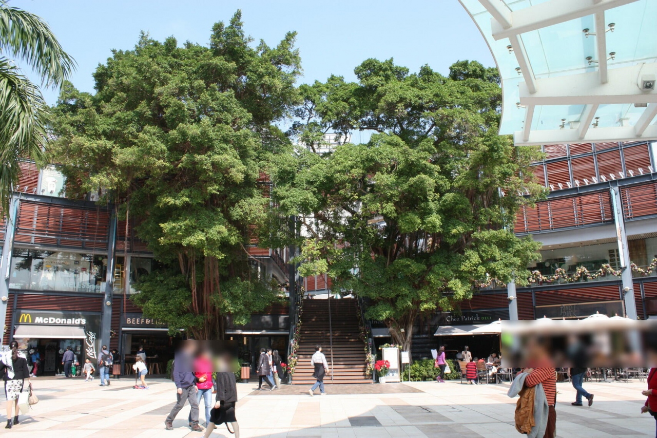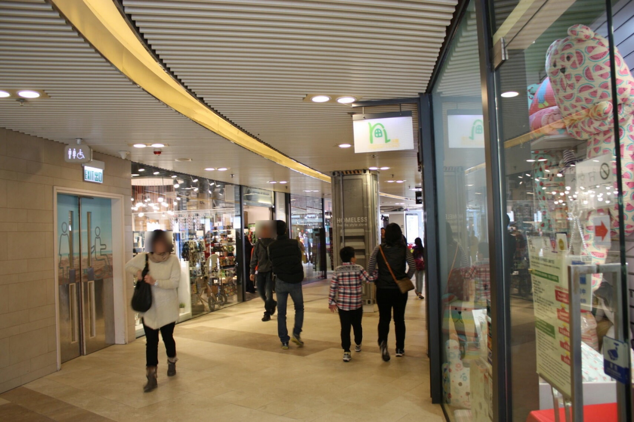 赤柱のがけに沿って建てられているショッピングモールです。入り口は下と最上階です。