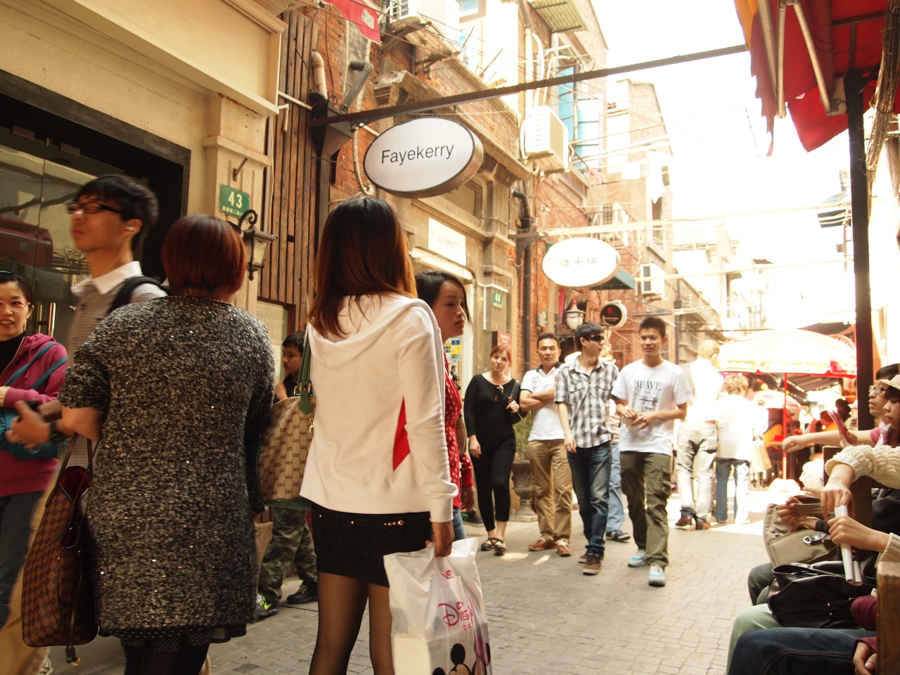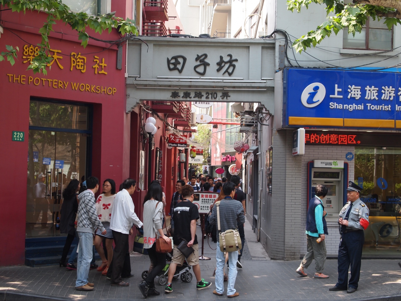 外国風のお店が立ち並ぶオシャレスポット「田子坊」。伝統的な「石庫門建築」の建物が並びます。清の時代の建物も残っているそうです。