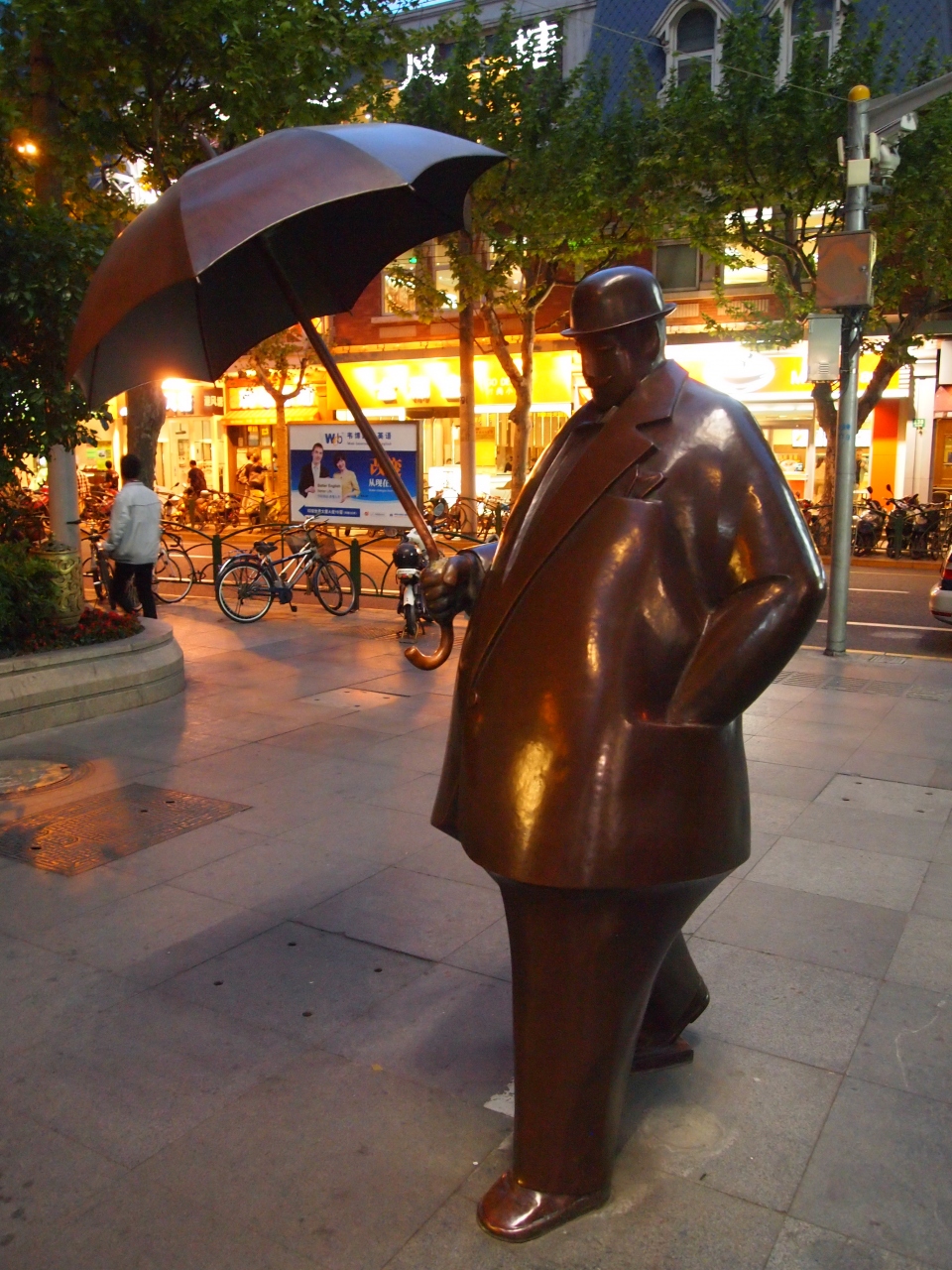 上海の中でも都会的な雰囲気のお店。可愛い銅像が建物のそばにありました。