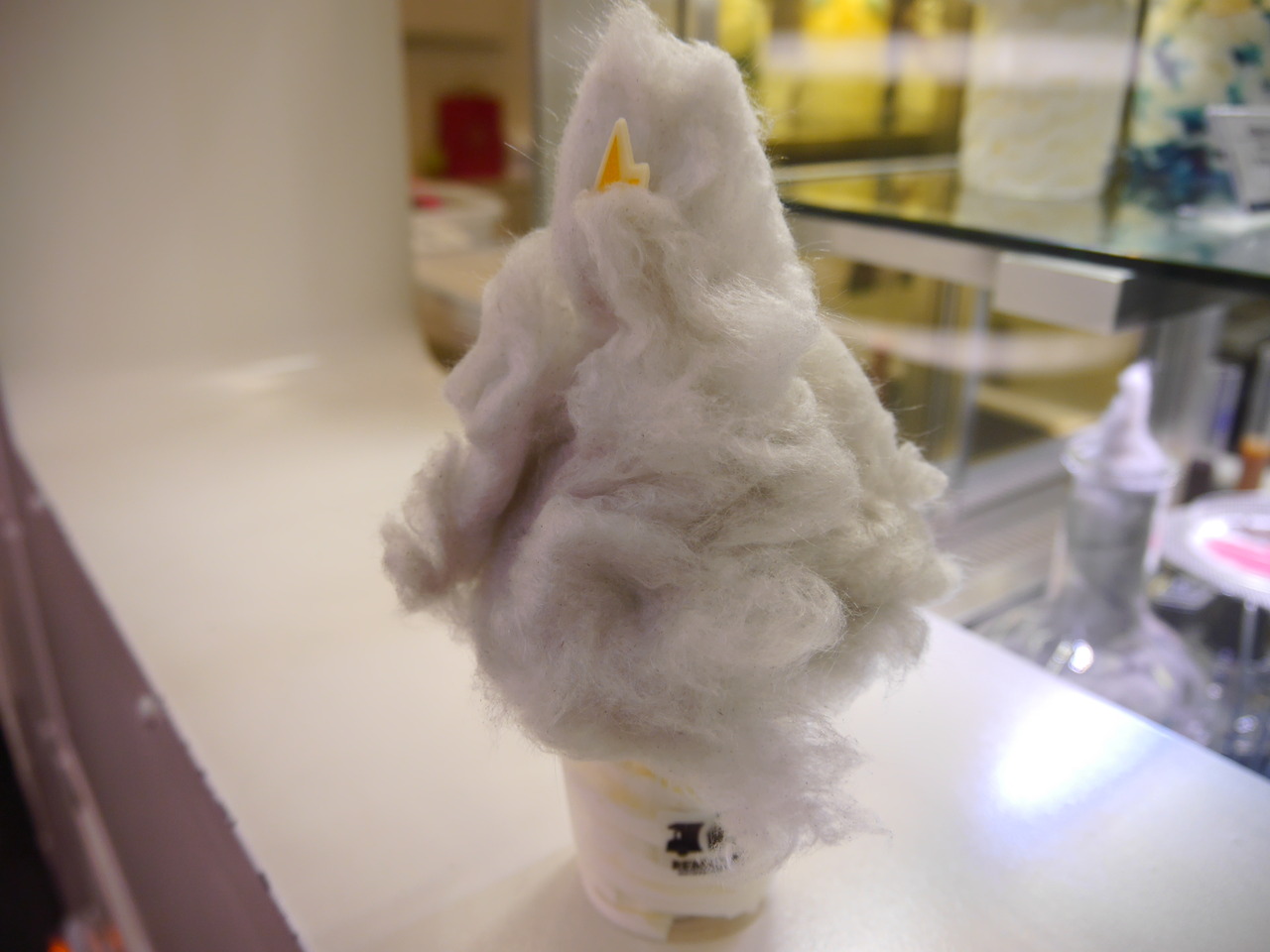 ソフトクリームの上に綿あめが乗っていて見た目が可愛いので、若い女の子に人気です。