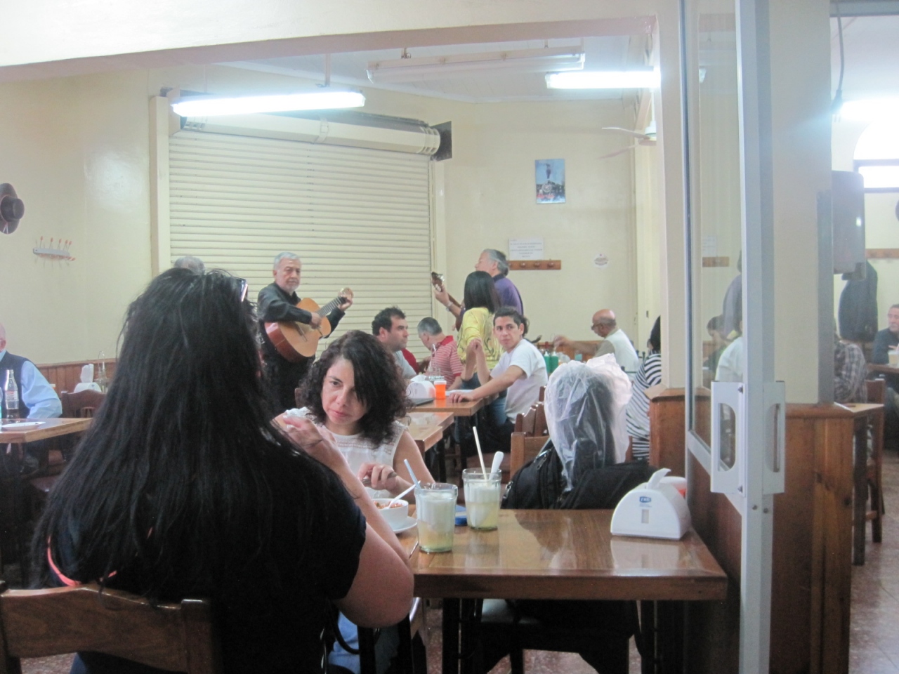 下町の食堂という雰囲気の店で、店内では流しの演奏があったり、行商のおっさんが売り込みに来たりします。