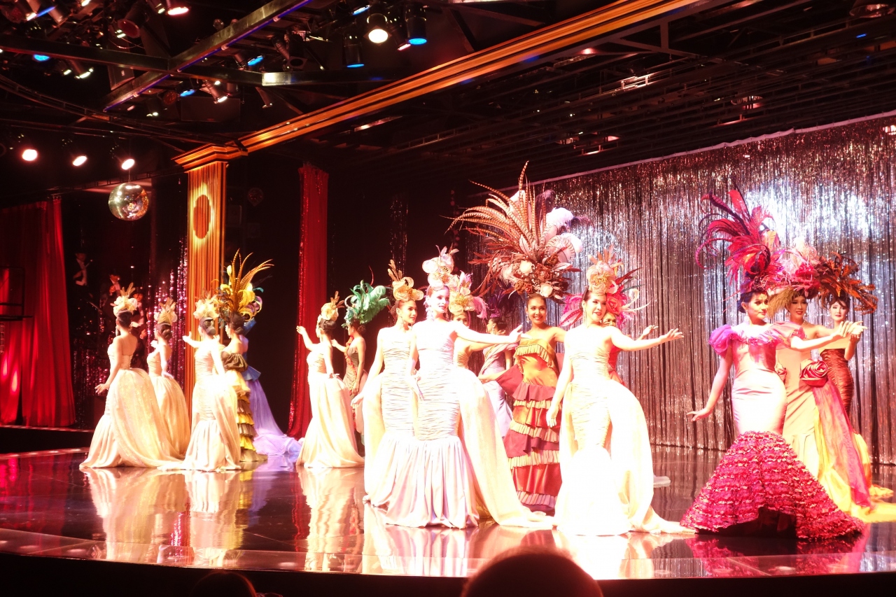 ニューハーフの方が続々と登場します。結構な人数ですし、完璧な女性の姿なので、本当の女性がいてもわからないんじゃないのか?ってくらいです。ショーの内容は、海外のお客さんを意識した内容で、日本や韓国、中国などをコンセプトにした演出があります。しかし生歌ではないですし、いまいち内容が分からず終わってしまうものが多く、途中で退屈してしまいました。最後はニューハーフの方がお出迎え、お見送りしてくれますが、結構体が大きく化粧も濃いのでその姿に圧倒されますし、一緒に写真を撮ってチップくれ、の圧がすごいです。