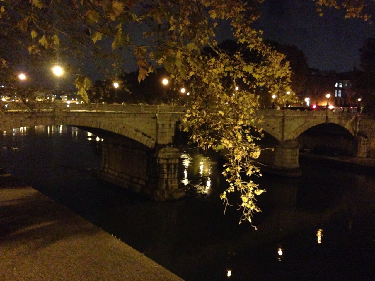 夜は、橋がライトアップされます。バチカンのドームなども川沿いからのぞめ、とてもロマンチックな景色が楽しめます。