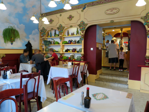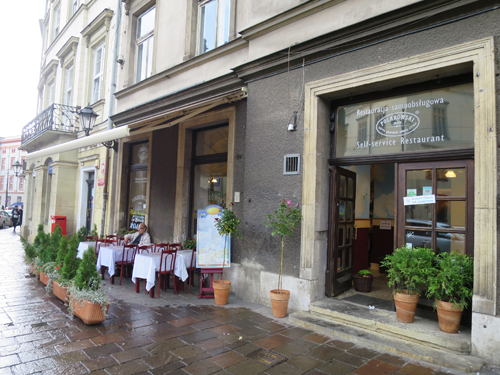 旧市街にあるセルフサービスのレストランです。日本人にはなじみのないポーランド料理ですが、目の前のショーケースに並んだ料理を見ながら指さして注文できるので便利でした。私はカツレツと付け合せにスピナッチとフライドポテトを頼みましたが、値段は約10ズウォティ(380円)と格安でおいしかったです。