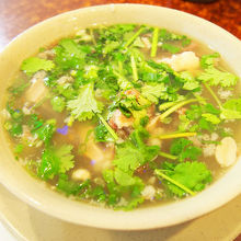 アラモアナ・センターから徒歩圏内にある、オックステールスープが名物のレストラン。パクチーが結構入っているので、嫌いな人は「ノーパクチー」と伝えたほうがいいと思います。最後にライスを入れて雑炊風にして食べるのがオススメ。