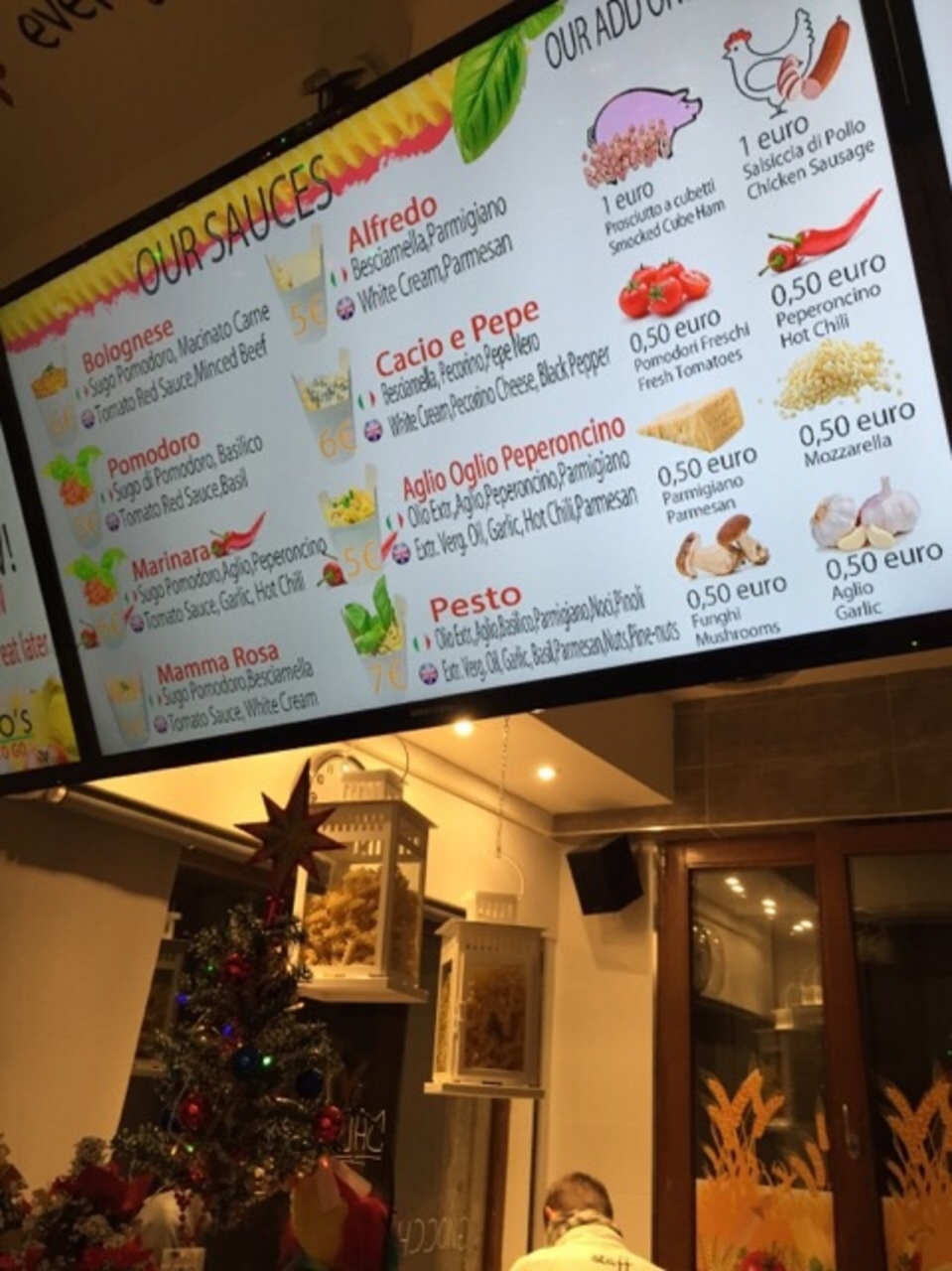 ベネチアの中心であるサンマルコ広場から歩いて数分のところにあるパスタのファーストフードです。